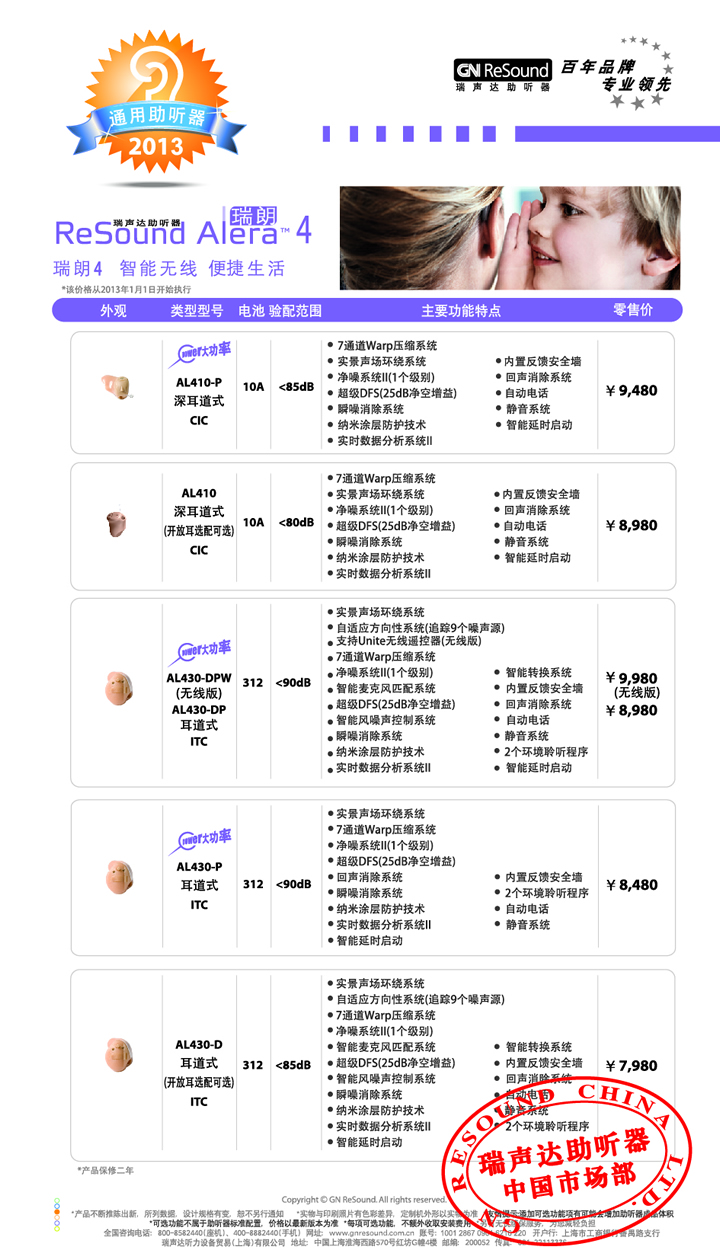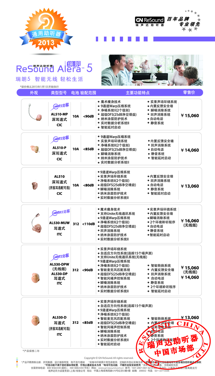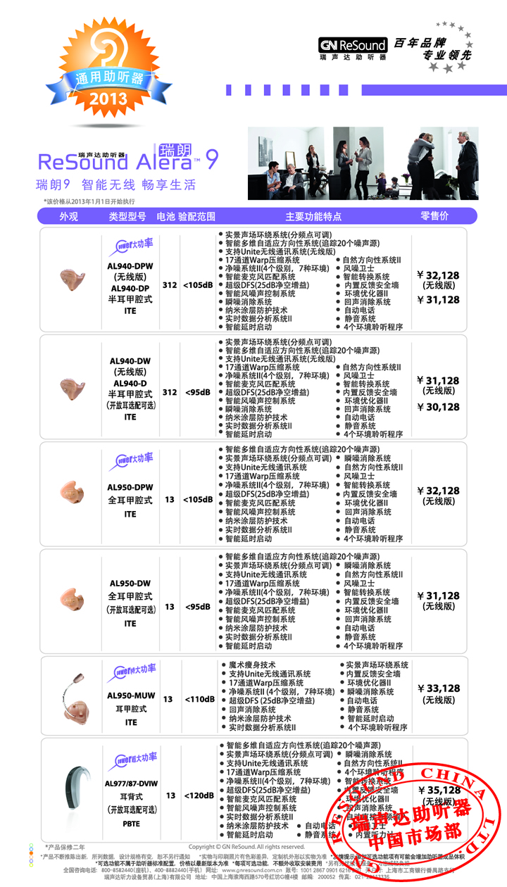 言语声环境、噪声环境和电子声环境构成了我们赖以生活的声环境,一切工作、学习、日常交流、娱乐休闲都离不开这些声音信息,如何能够在各种声环境中听得更好一直是助听器研发的目标。通过长久以来的努力,助听器已能有效提升言语清晰度,解决交流障碍,同时确保声音的舒适度,尤其在噪声环境中。然而,助听器在对电子声的处理上,仍存在着一些问题,如声音衰减、音像不同步、失真等。尽管不少公司通过使用各种辅助音频传输的中转设备或颈部项圈形式以期解决该问题,但由于助听器芯片容量和声处理速度的局限,用户想要收听到高保真的,原汁原味的电子声音的愿望始终未能得到满足。 智能无线 自由联通 瑞朗系列产品性能 瑞朗(Alera)系列产品分为瑞朗9、瑞朗7、瑞朗5三个子系列,满足您不同的聆听需求。